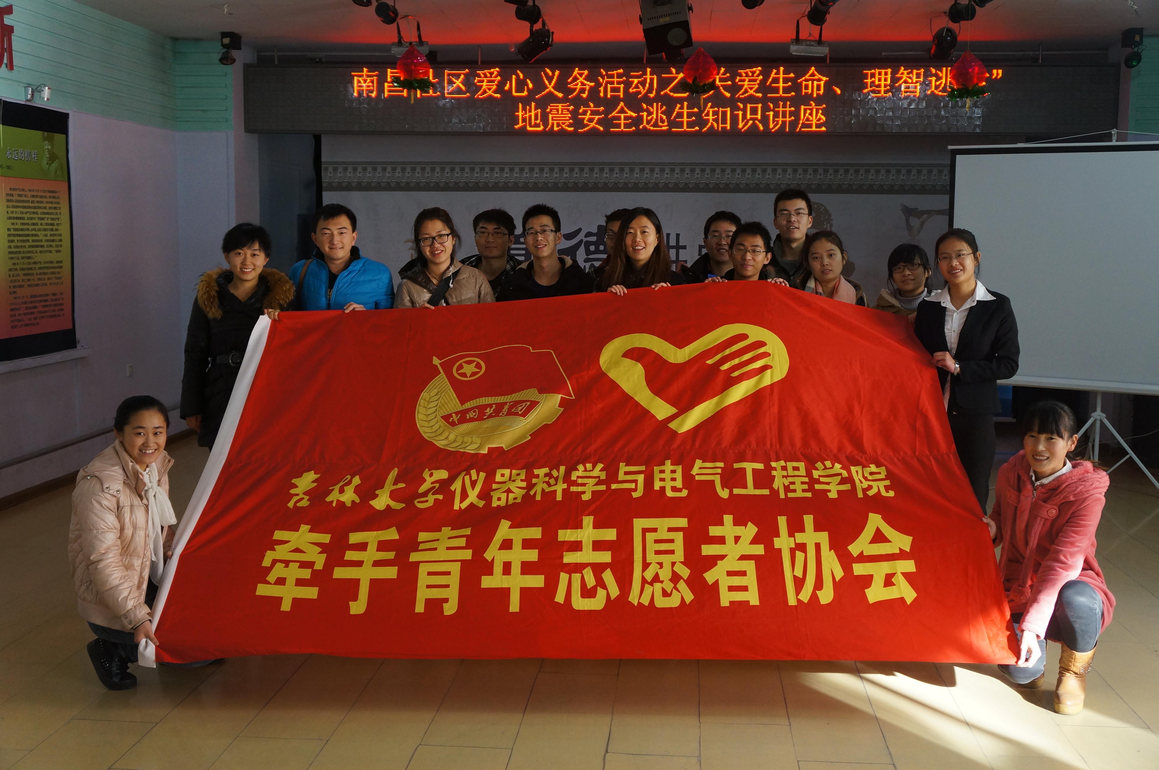 团委于2013年12月4日组织40余名大学生志愿者走进朝阳区清和街道南昌社区开展了以“关爱生命、理智逃生”为主题的地震科普知识讲座。