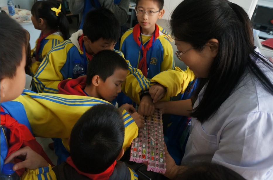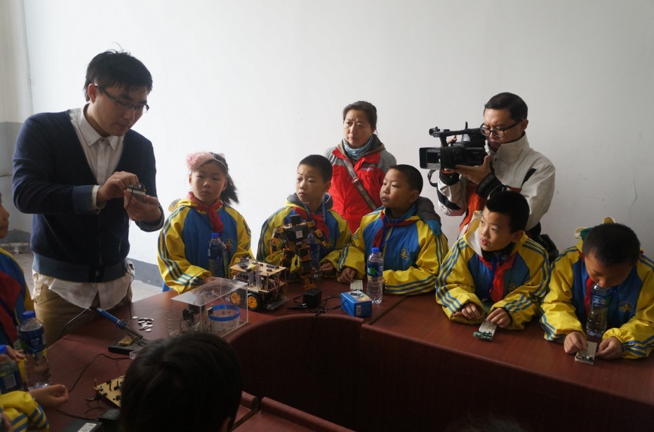 历年大学生电子设计竞赛的优秀作品,奇妙的电子作品让孩子们大开眼界。随后,孩子们在志愿者们的指导和带领下尝试了一些简单的电子模块制作,在动手实践中体会到了科学知识带来的无限乐趣。最后,孩子们又来到了一色