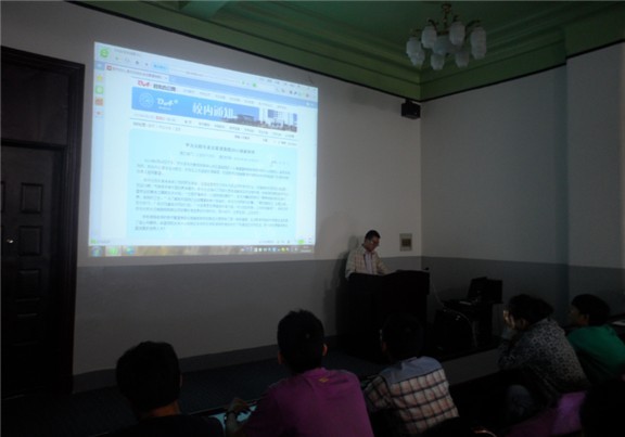 团委于2013年9月22日18:30在朝阳校区地质宫208会议室组织开展了新闻写作专题培训活动。本次培训由学院团委书记、2011级辅导员朱宇主讲,学院分团委、学生会、“牵手”青年志愿者协会、科技协会、新闻通讯社等主要负责人参加了此次培训活动。