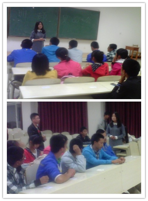 会前,组织培训部部长邱硕以及全体副部长组织了新成员的签到,20:10见面交流会正式开始。组织培训部部长邱硕首先对新成员的加入表示热烈的欢迎和由衷的祝贺,而后,他详细介绍了组织培训部的具体职能以及工作计划,他指出 “组织培训部由于是院团委新近成立的部门,故而任重而道远,我们可能会摸着石头过河,但我们的工作也要有自己的主线,大家需要了解部门的职能,这样才能更好地开展工作……”随后,从副部到干事,大家一一进行了自我介绍,大家从陌生到认识,从认识到熟悉,气氛轻松而愉快。最后,部长邱硕强调“在做好学生工作的同时也不能忽视学习,一定要统筹兼顾学习与工作的关系,做一名成绩过硬、工作扎实品的优秀大学生”。
