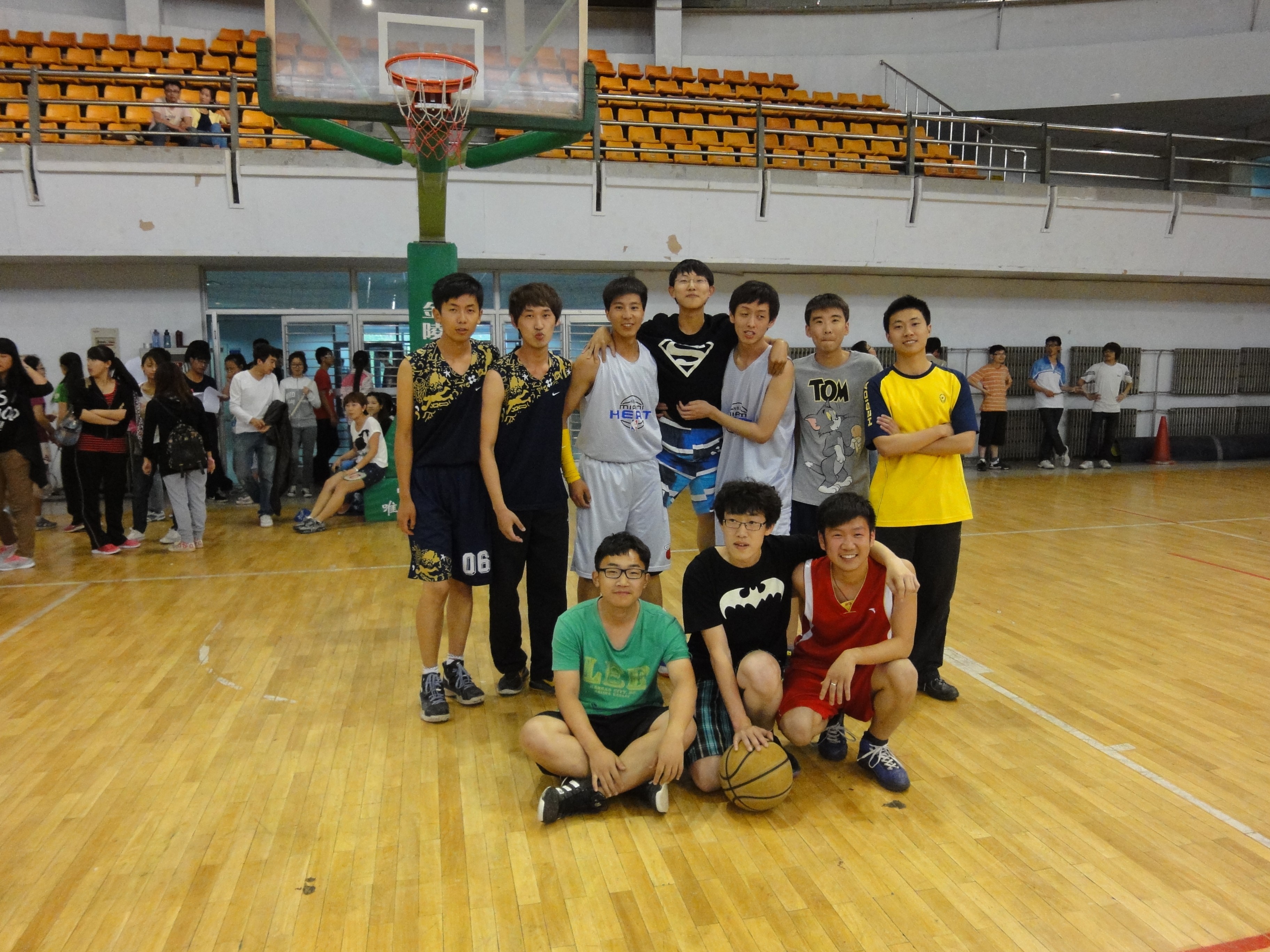 两队队员在当天下午早早地来到体育馆进行热身,认真地准备这场友谊比赛。比赛于18:00准时开始,朱宇老师为两队队员进行抛球。在前两节比赛中,队员们奋力拼搏,逐渐展露出自己的实力,测控技术与仪器队凭借着出色的球技和良好的配合领先于电气工程及其自动化队。在中场休息时,现场观众分为男女两组进行了互动表演环节,每班选出两名男生和两名女生进行投篮比赛,男生在三分线每人投五个球,女生在罚球线前一米每人投三个球,按正常比赛分数加分给相应专业的球队。现场投篮同学的精彩表现迎来了同学们热烈的掌声和喝彩声。在第三节中,电气工程及其自动化队改变了进攻战术,在比分落后的情况下越战越勇,以精彩的配合将比分几乎追平。比赛在第四节进入到胶着状态,两队比分始终非常接近,两队拉拉队员在场外高声为自己的球队加油助威,现场掀起了一波又一波高潮。最后,测控技术与仪器队以76:68战胜电气工程及其自动化队,取得了这场友谊赛的胜利。比赛结束后,2011级辅导员朱宇与现场同学们一起在赛场上留影纪念。