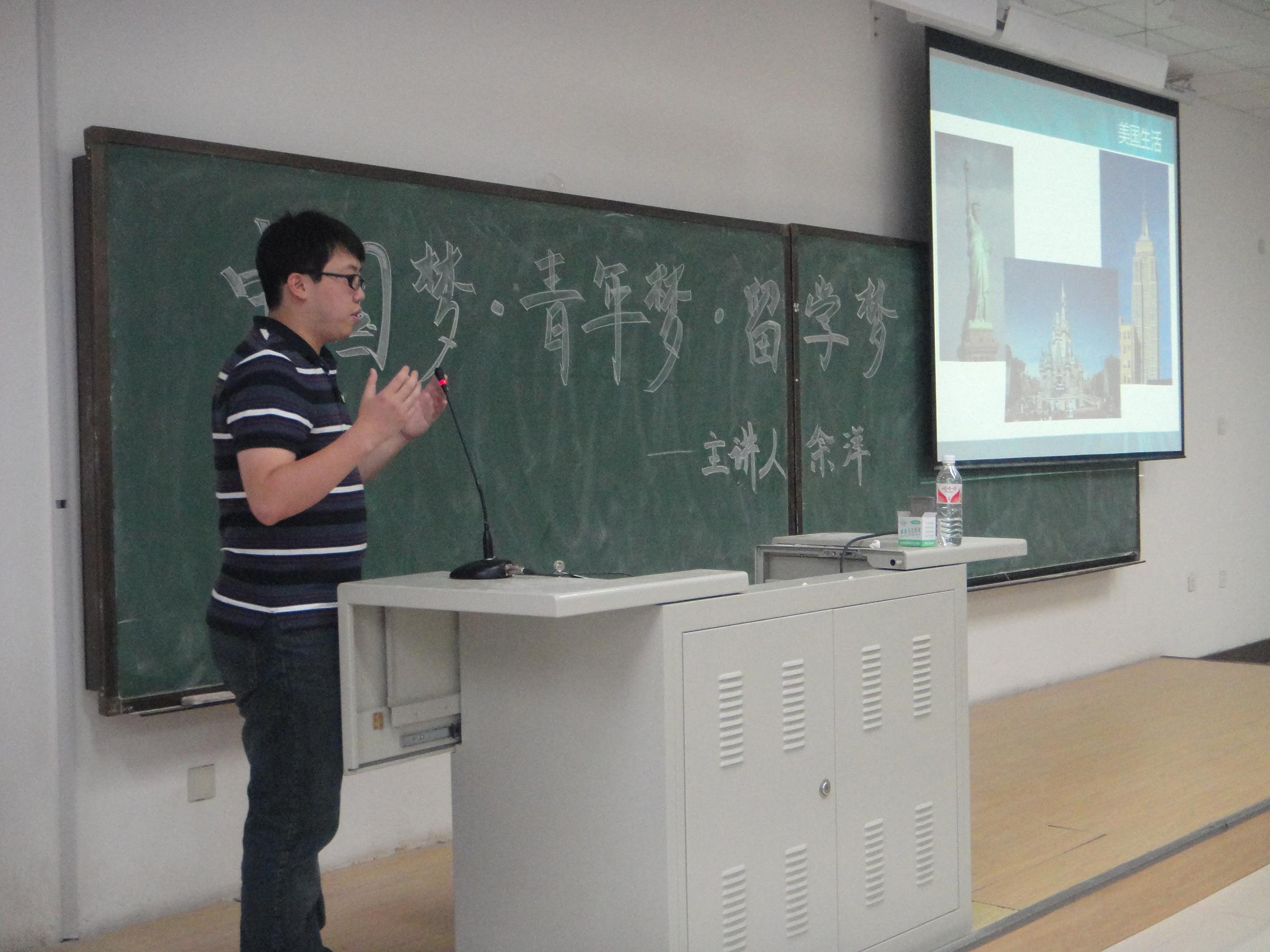 团委于2013年5月28日15:00在中心校区李四光楼107教室举行了“中国梦·青年梦·留学梦”专题讲座活动。本次专题讲座特别邀请到了现于美国纽约大学攻读硕士学位的一色