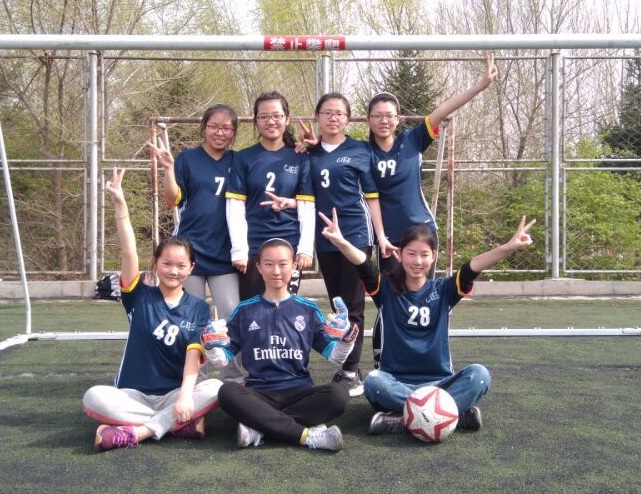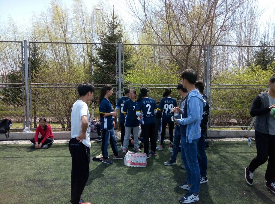 女子足球队员精力充沛,场外的同学们热情无限,大声呐喊助威。运动员们以最好的状态进入到比赛中,她们默契的配合,精妙的传球,出色的防守使上半场比赛不分上下。但在最后点球之时,我方运动员的点球未进,最终落败。下午一点四十分,一色