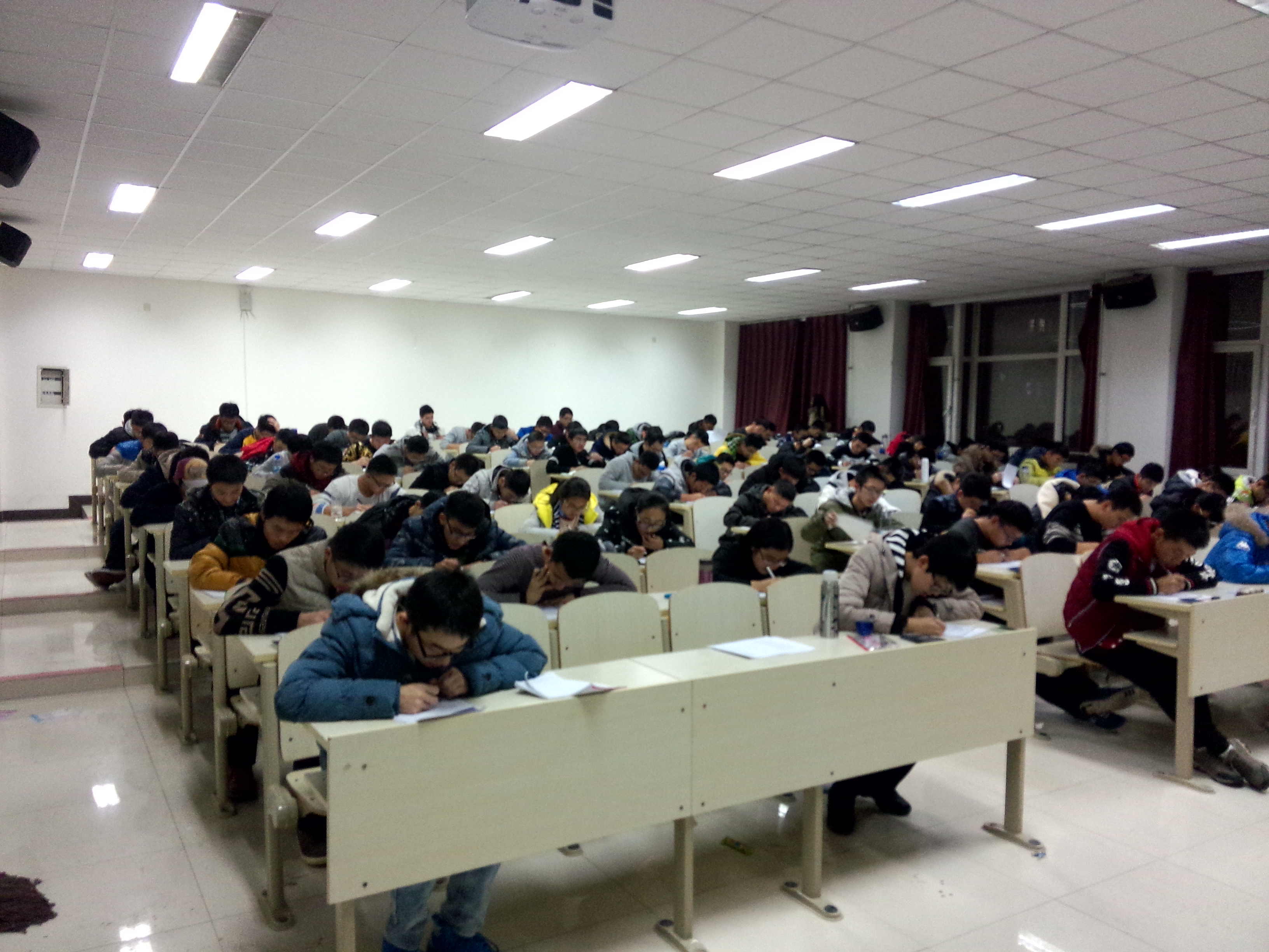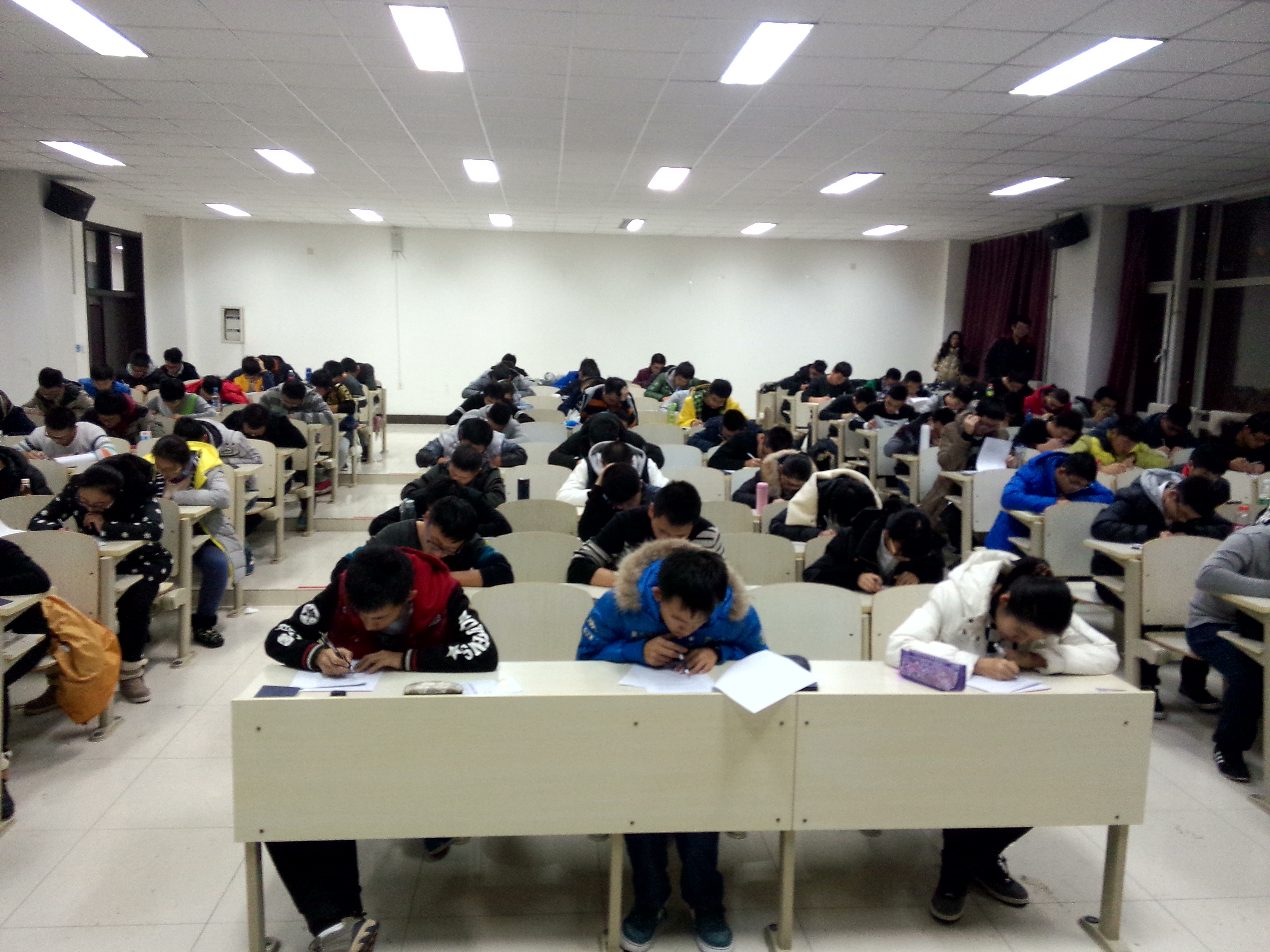 2015级全体学生在前卫南区李四光楼308和310教室举行期末模拟考试,一色