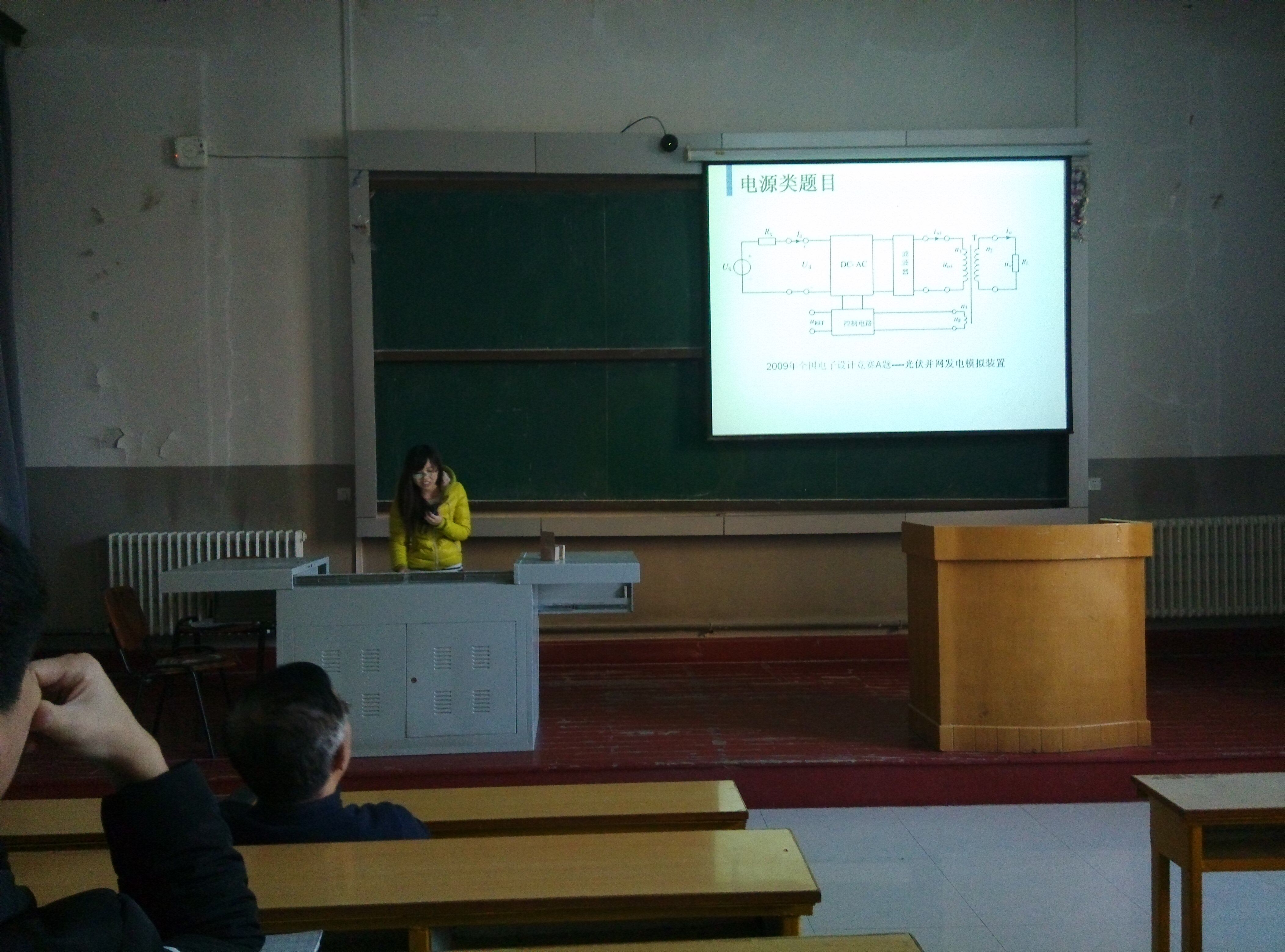 此次沙龙的内容更加丰富,沙龙活动开始便直入主题,首先由周晖学长,王倩学姐讲解报告,报告题目是《2015年国赛A题—双向DC-DC变换器》。照顾到低年级学生,王倩学姐首先对基础的电源知识进行了介绍,由大家高中便已经熟知的知识点,引出BUCK电路、BOOST电路等新知识,深入浅出,使在场各位都很轻松的接受,并极大提升了低年级学员的兴趣。紧接着,周晖学长趁热打铁,为大家详细解读了国赛的A题,带领大家体验了国赛时发现问题、解决问题的种种经历。而且周晖学长还根据自己的理解将电路模型进行分模块讲解,并对于如控制电路和主电路如何联系等核心问题进行详细剖析,在座各位都听得津津有味。新成员们热情高涨,王应吉老师在学长学姐们进行讲解时一直专注地聆听,并在报告结束后的提问环节也参与了进来,王老师详细而又通俗易懂的讲解,让大家一次又一次爆发掌声。在王老师的帮助下,提问进行得十分顺利。提问环节结束时,大家都有些意犹未尽。王老师在随后又为大家介绍了阻抗匹配的相关知识,通过最基础的戴维南、诺顿等效的简单电路开始,为大家详尽地介绍了阻抗匹配的概念,原本复杂冗长的概念,到了王老师手中仿佛变成了1+1=2,大家都在惊叹,又在全神贯注地听着,生怕漏掉什么。而后对于阻抗匹配的应用实现部分,王老师以机智幽默的讲解方式,让会场又被掌声淹没。