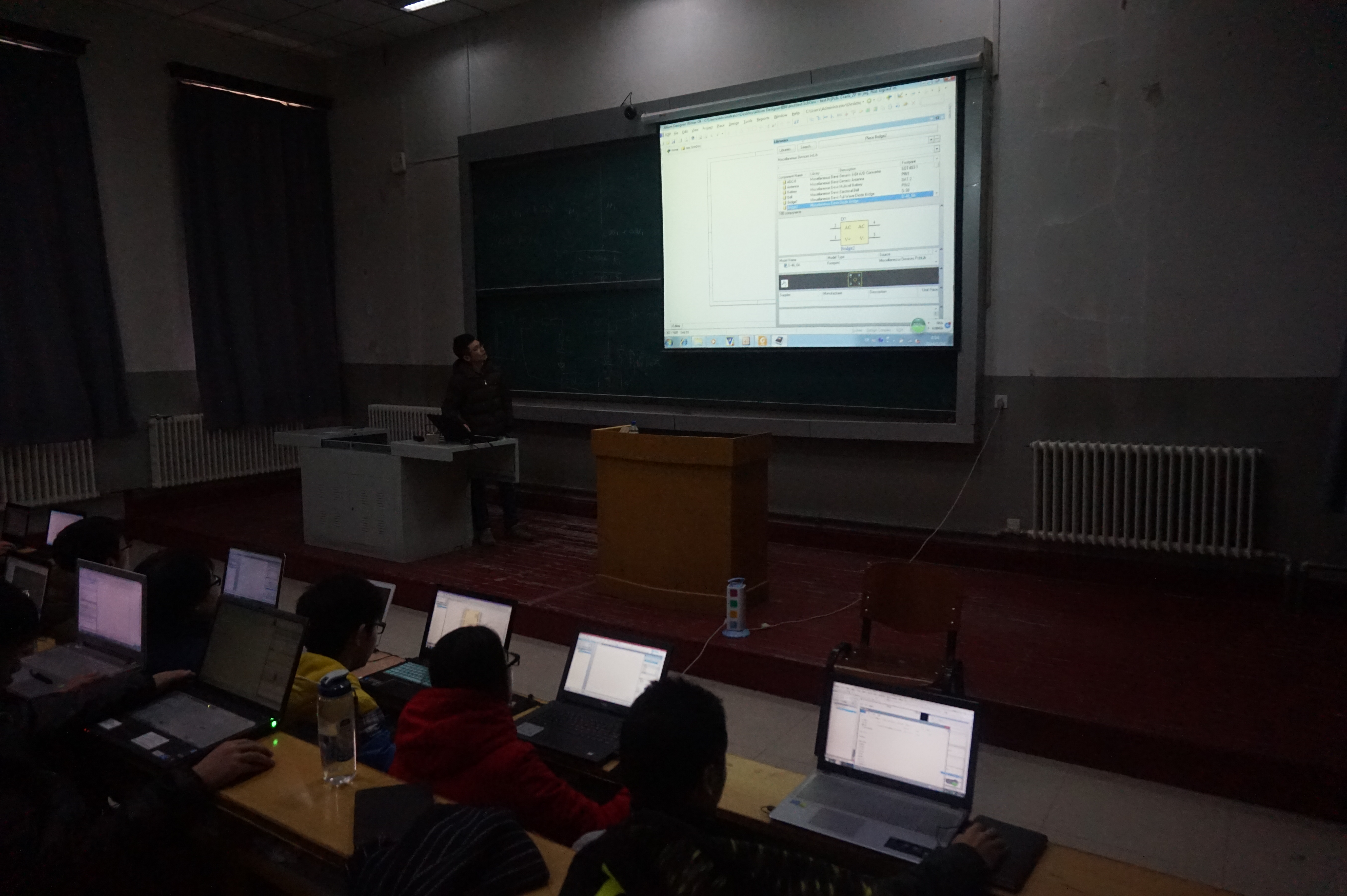 上午8:00-11:00于地质宫224教室,滕飞老师为2014级队员讲解ARM微处理器。老师首先向同学们简要介绍了Arm单片机的的发展历史,接着讲解了我们培训使用的单片机的使用流程。随后,老师带领同学们一起用keil软件建立驱动Arm单片机的工程。由于建立Arm驱动工程的过程比较复杂,期间有不少同学掉队,但老师不抛不弃,耐心地带领每个同学做好。这次Arm 单片机的培训持续时间长,训练强度大,但在老师耐心地带领下,大家最终都完成了任务。上午8:00-下午17:00,2013级队员继续完成各组的专业社会实践任务。晚上18:00-20:00于地质宫“216开放实验室”, 滕飞老师为2013级控制组队员讲解视频模块。首先滕飞老师简单介绍了OV7670视频模块的基本参数,又就2015年国赛飞机题和魔方机器人详细的讲解了视频模块的使用。最后滕飞老师要求控制组全体在假期完成图像采集的程序编写。晚上18:00-20:00于地质宫408实验室,杨泓渊老师为2014级队员讲解2015年国赛复测题。老师首先向同学们简要向同学们介绍了上一年度全国大学生电子设计竞赛综合测评题的主要内容以及相关的要点。之后,老师带领大家逐条分析题目,并讨论实现方案。最后杨老师要求各组仿真设计并制作出成品。
