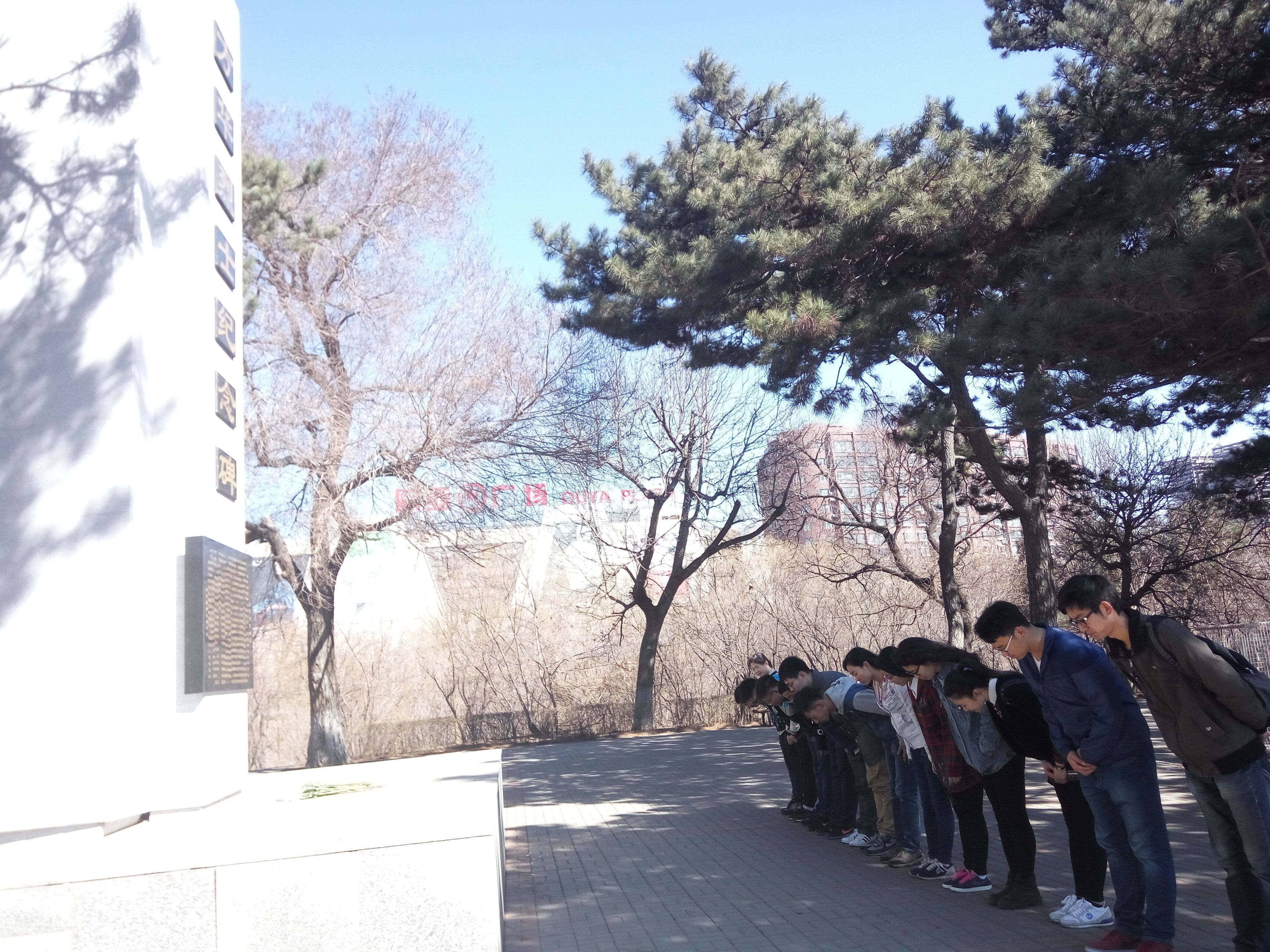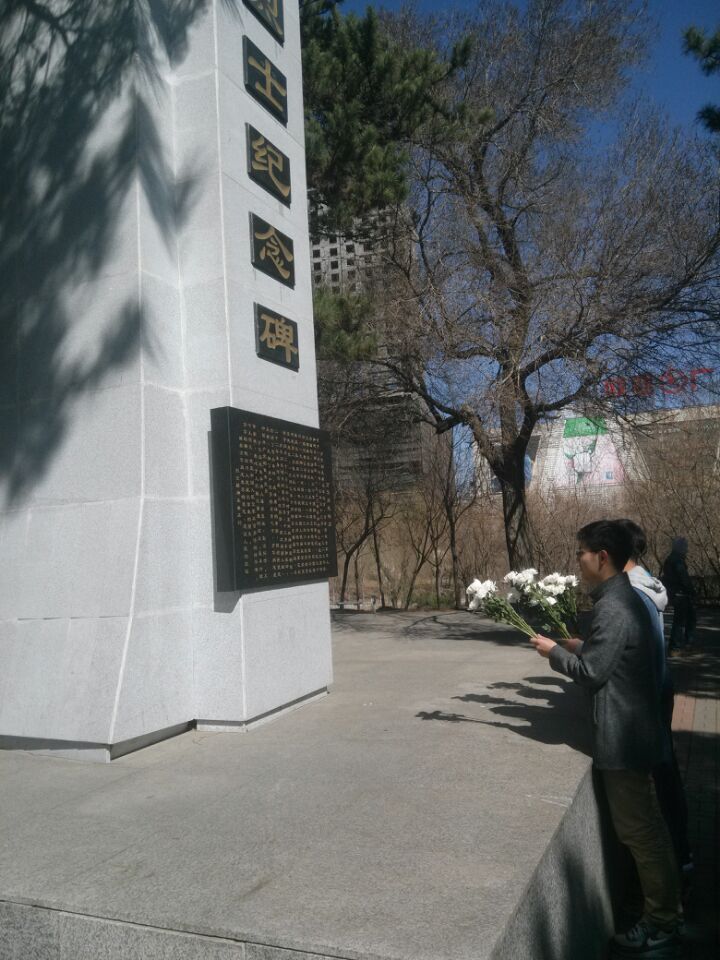 上午十时,志愿者们怀着满心的期待和崇敬早早到达了目的地,随后会长侯雪征宣布扫墓仪式开始,在简单介绍了清明节的历史之后,他带领志愿者们为烈士墓献上鲜花,全体同学面向英烈纪念碑默哀一分钟,向先烈们致以崇高的敬意。在宏伟壮观的英烈纪念碑前,志愿者们表达了自己的感受,他们纷纷表示真切感受到了革命先烈的伟大和崇高,并表示会将先烈们的精神传承下去,发扬光大。随后,会长带领志愿者们清扫了纪念碑周围的公园空地,为到纪念碑前缅怀先烈的市民提供了一个干净整洁的环境,也使春意盎然的公园更加迷人。