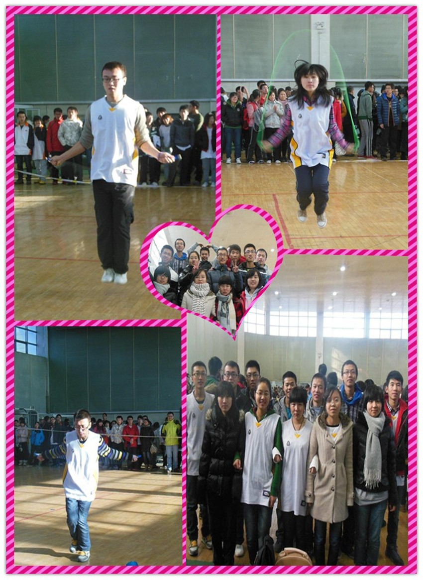 选派2011级和2012级学生参加了此次活动,并取得不俗成绩。邹学良、袁月同学在双人花样比赛项目中荣获全校第六名和团体二等奖;魏鑫同学在在女双摇项目中获得全校第四名、女单摇项目中获得全校第七名;介浩涵同学在男双摇比赛中获得第四名;郭英杰同学在单人花样比赛中获得全校第七名。