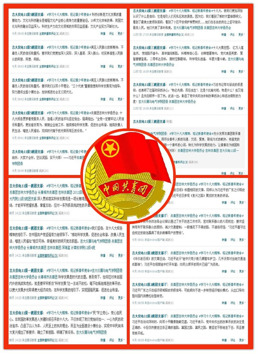 自2012年11月19日开始,学院团委组织各班级团支部以“学习十八大精神,铭记新青年使命”为主题开展微博学议十八大活动。此后的二十余天时间里,学院各班级团支部坚持“突出主题,注重创新,结合专业”的原则,积极结合专业知识,从专业角度对十八大进行学习和讨论,充分体现学院和专业特点。截止到2012年12月10日,学院全体团支部累计发布相关主题微博近3000条,被阅读次数累计超过5万余次,被转播超过400次,营造了学习宣传贯彻党的十八大精神的浓厚良好氛围,与学校其它兄弟院系共同掀起了一色