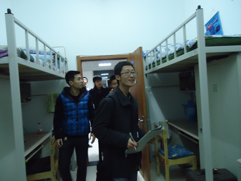 活动分两组进行,一组对男寝清洁卫生进行评分,另一组对女寝清洁卫生进行评分。活动中,一色