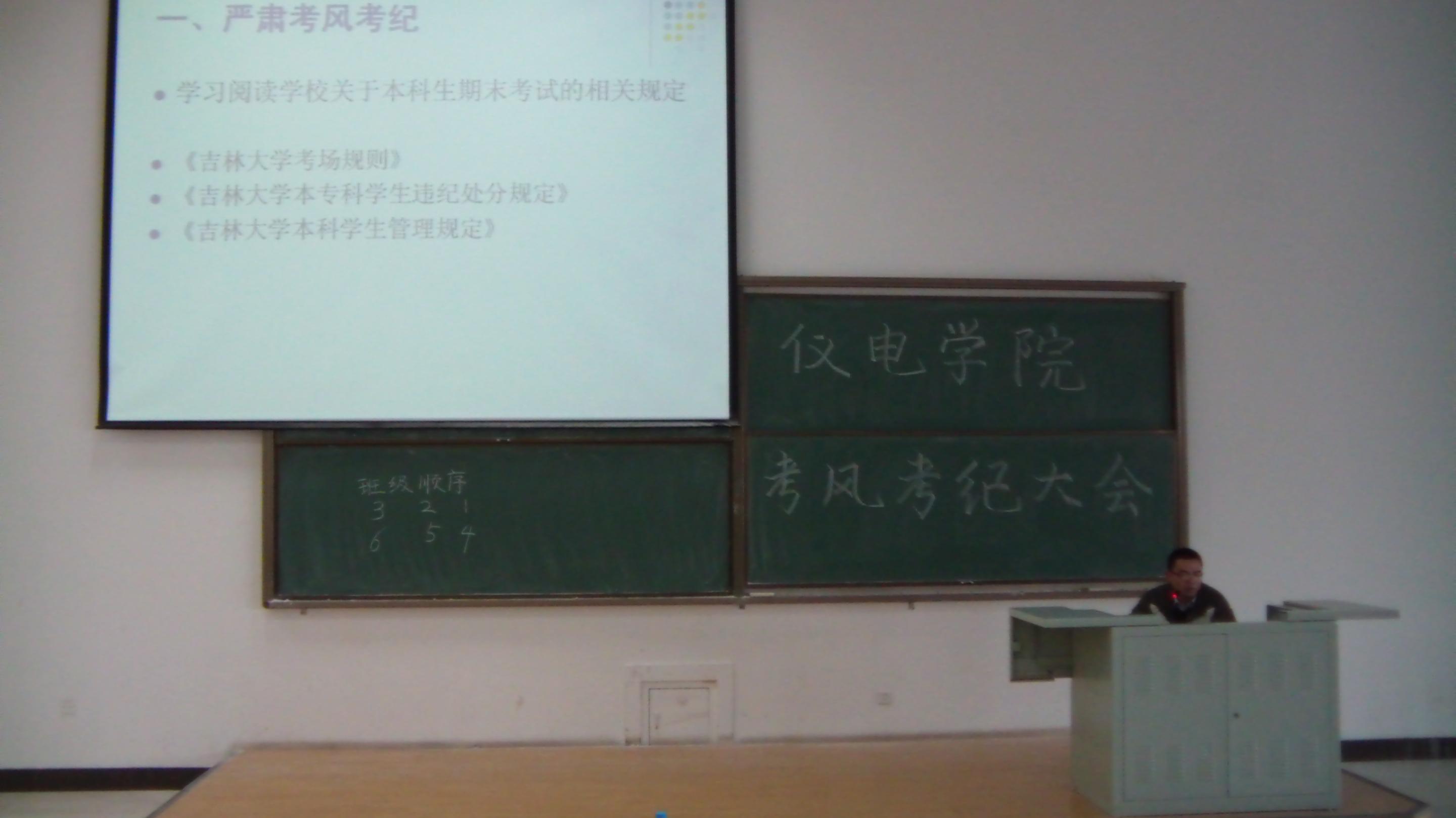 于2011年12月27日下午13:30在中心校区李四光楼第二阶梯教室召开了2011级考风考纪和学风建设宣讲教育会。一色