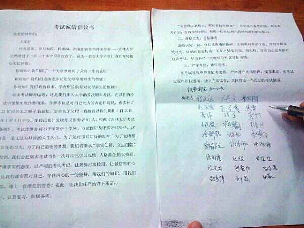 组织2010级全体本科学生签订了《考试诚信倡议书》,倡导同学们诚信考试。