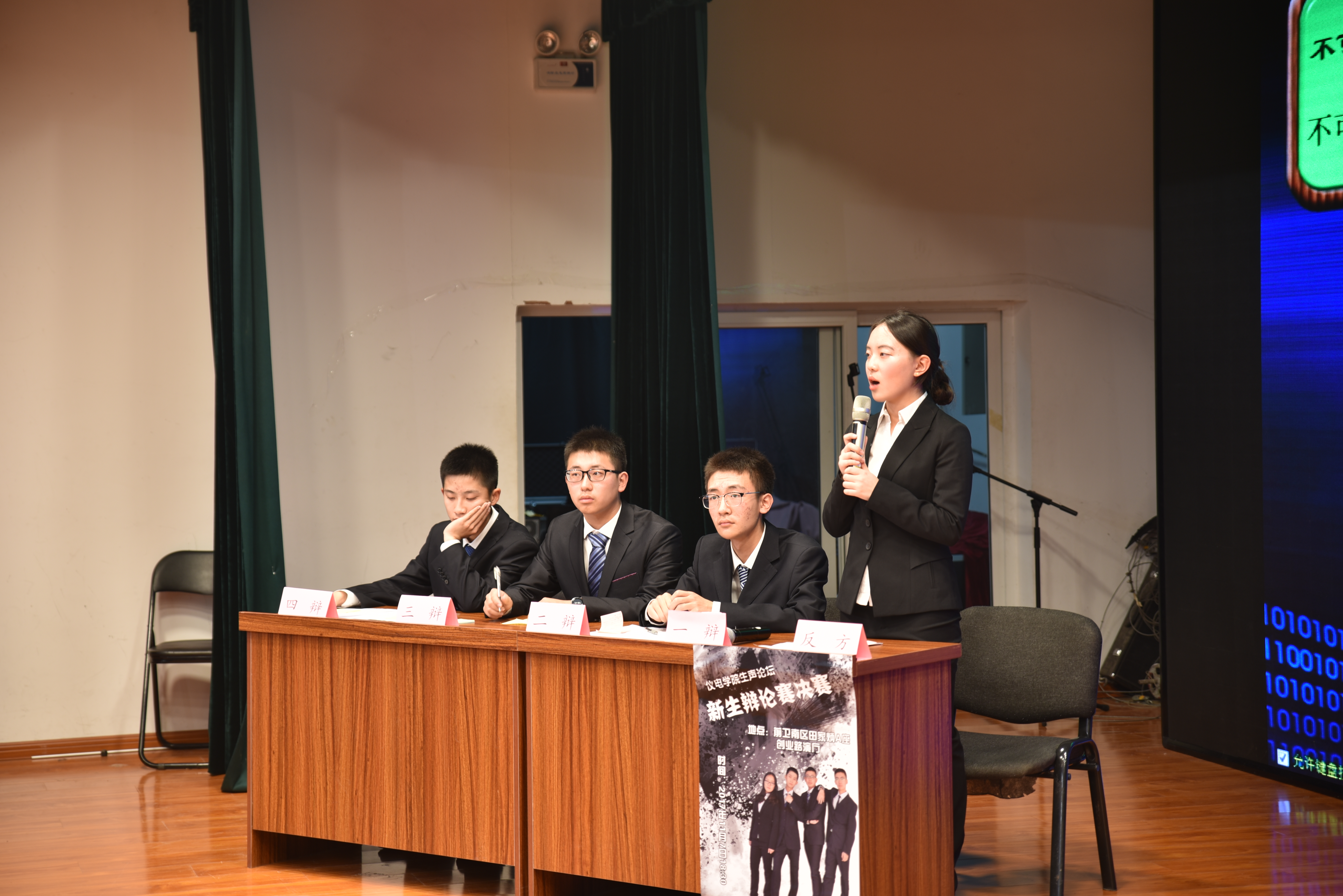 活动过程中,进行了新生辩论赛总决赛。本次比赛采用新颖赛制,双方辩手就辩题展开了激烈深入的讨论。辩手们在立论、攻辩环节中思路清晰,字字珠玑,并围绕十九大展开辩题,使现场气氛迅速升温;在自由辩论环节,双方更是妙语连珠,舌绽莲花,使观众热情高涨;结辩时辩手们语言精简,完美地总结了整场辩论,从国家与人民的角度入手,深刻地阐述了十九大的意义,令人意犹未尽。最终,反方代表队胜利,并获得了团队一等奖。本场辩论赛的最佳辩手为张家硕和吴广栋同学,他们的精彩表现使观众们惊叹佩服。