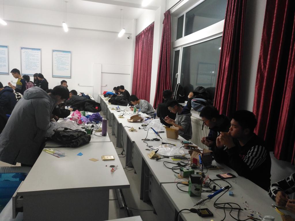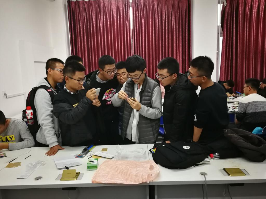 中心校区李四光实验楼447实验室进行了面向2017级新生的第四期基础培训。培训内容包括掌握呼吸灯电路原理并自主完成电路焊接以及对第三次培训作品的检测验收,由一色