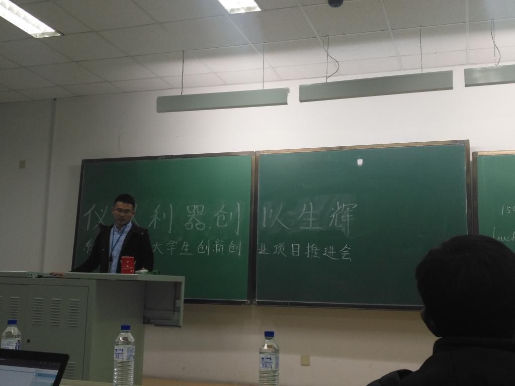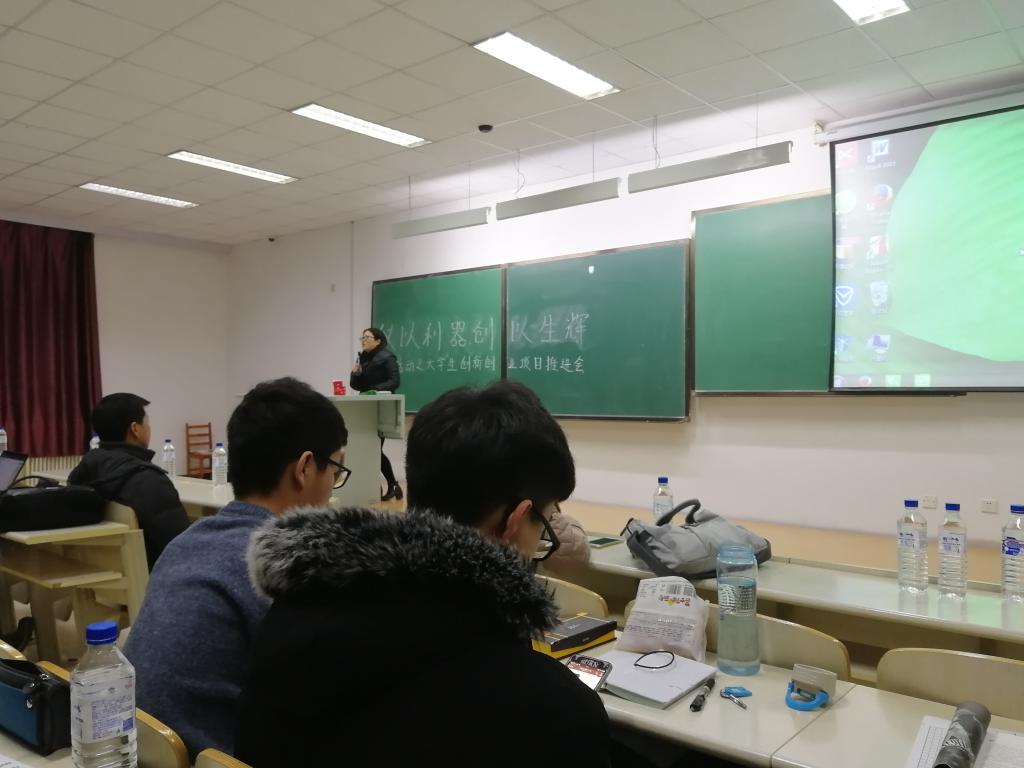 中心校区李四光楼302教室进行了面向2016级学生的“大学生创新创业训练计划”项目推进会,推进会的主要内容是各个指导老师介绍自己的科研方向并给出“大学生创新创业训练计划”项目相关题目。本次推进会由一色