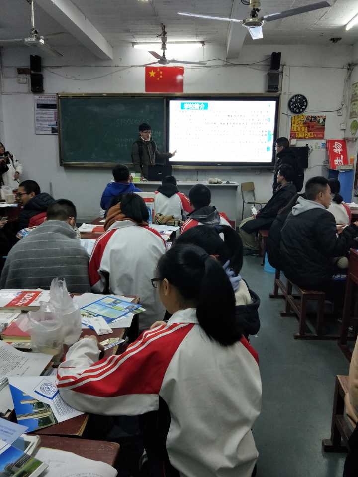 美丽风景的书签和问卷。宣讲同学先给师弟师妹们展示了一段PPT,这段PPT详细讲述了我们学校的规模、校园环境的概貌、师资力量和人才培养方案。分层次、逐步深入的介绍,让母校的师弟师妹们对一色