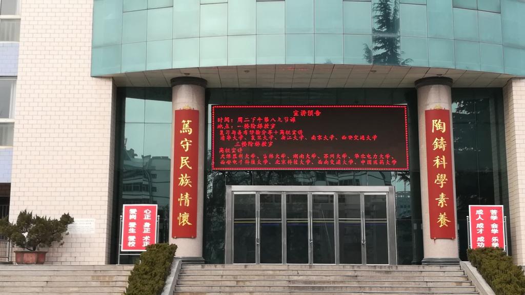 2017级金雪莹、柏韩、张春明组成的宣讲队于2018年2月27日——正值高考100天倒计时时,分别前往甘肃省的敦煌中学和天水市第一中学举行了一色