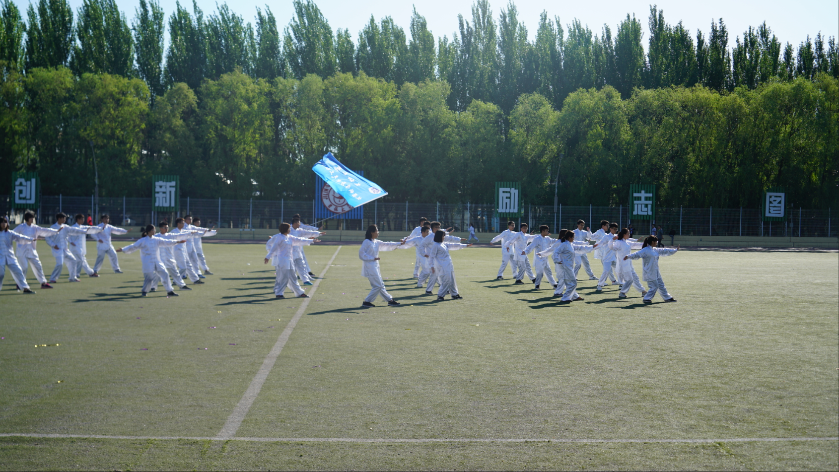 为丰富同学们的课余生活,展现大学生们积极进取,奋发进取的精神风貌,2018年5月19日早上七点钟,我校在体育场举行了太极比赛,一色