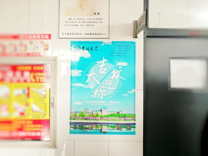 的招生宣传片,期间随机向高三考生分发礼物,如吉大校园手绘明信片,宣传海报,小徽章等。学弟学妹们都专心致志地观看视频,感受一色