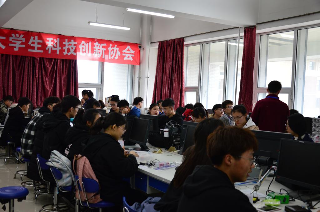 大学生科技创新协会在李四光实验楼447仪电学院开放实验室举办了电子音箱制作活动。活动共有12个学院的45名同学参与,在科协的12名志愿者的帮助下,活动成功举办。