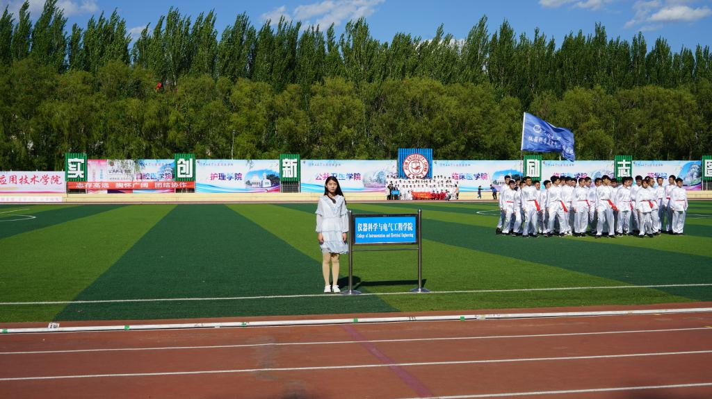 长拳队伍于第三组上场。伴随着长拳音乐响起,同学们步履一致,动作刚劲有力。白衣随着清风飘舞,汗水从同学们额头滴落,但他们的眼神依旧坚定,展现着仪电学子的风采。