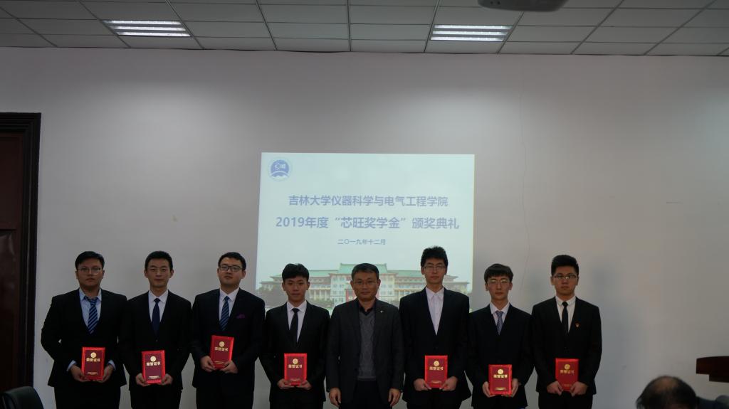 2019年度“芯旺奖学金”的决定》,此次获奖的19名学生为仪电学院2017级本科生,其中一等奖3名、二等奖3名、三等奖13名。《决定》宣读完毕后颁奖仪式正式开始,王言章教授、刘长胜教授为获得2019年度“芯旺奖学金”三等奖的同学颁奖,李国永先生、嵇艳鞠院长为获得2019年度“芯旺奖学金”二等奖的同学颁奖,朱少华先生、邱增凯教授为获得2019年度“芯旺奖学金”一等奖的同学颁奖。颁奖仪式结束后,获奖学生代表吴广栋同学汇报在校学习情况。在汇报中,他表达了对上海芯旺微电子技术有限公司的感谢和对领导老师的敬意,并表示成绩的取得离不开领导老师的关怀和社会及企业的帮助。作为大三学生,必将把握现在,珍惜时光,努力学习,刻苦钻研以报答所有关怀过、帮助过他们的人。
