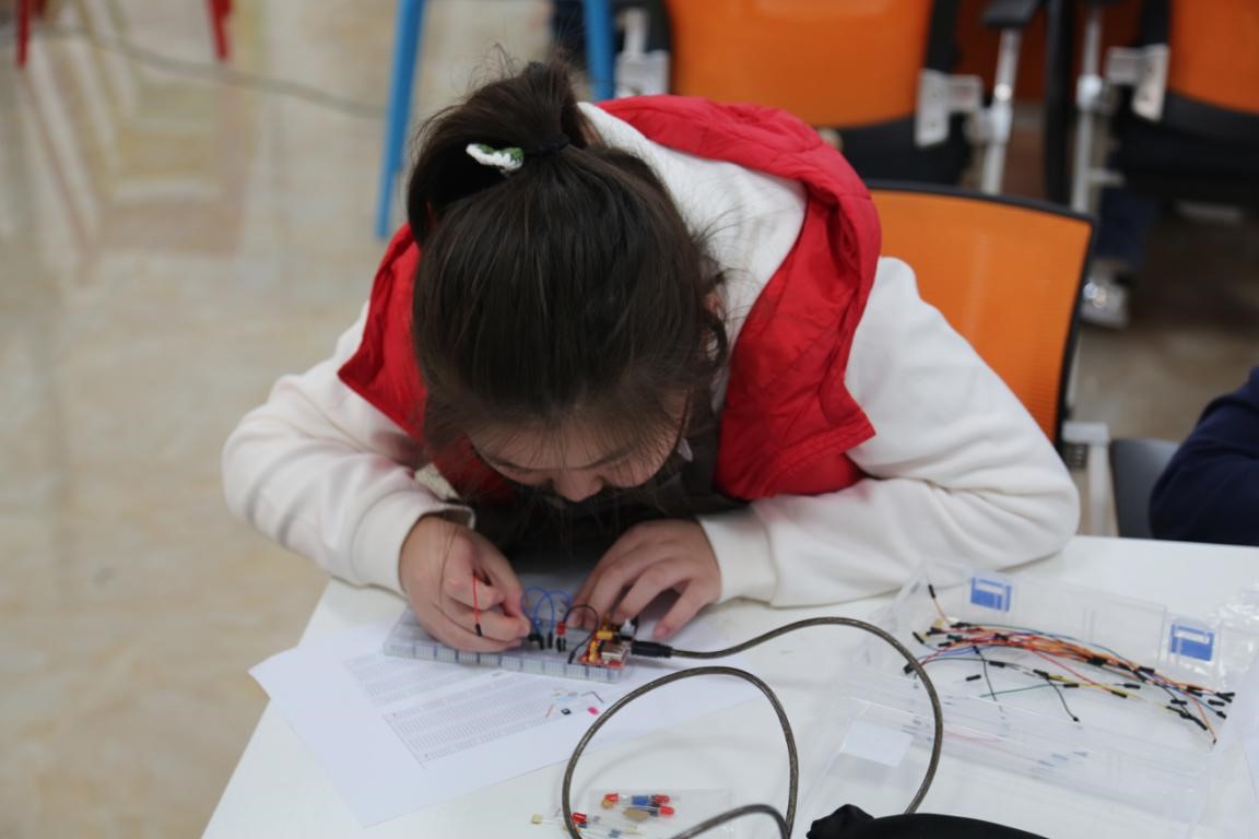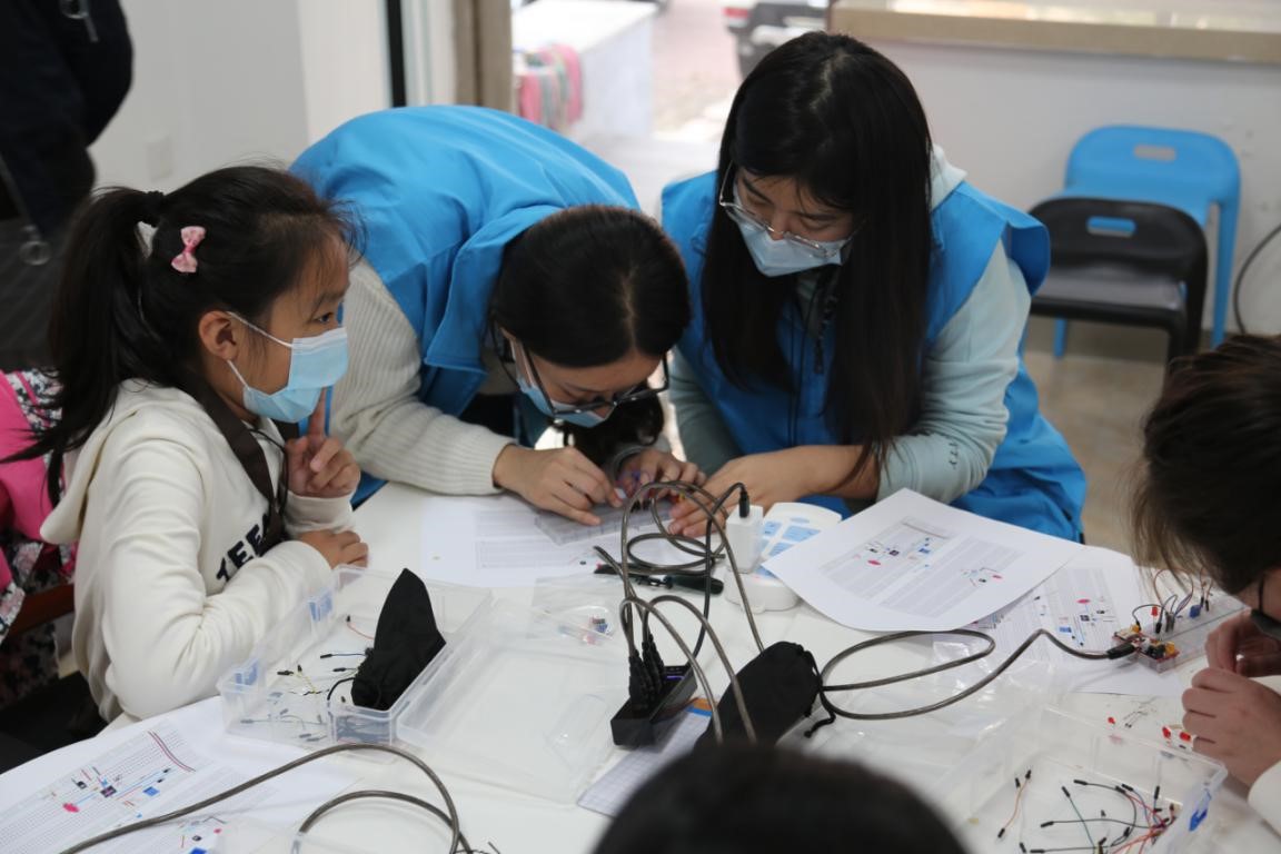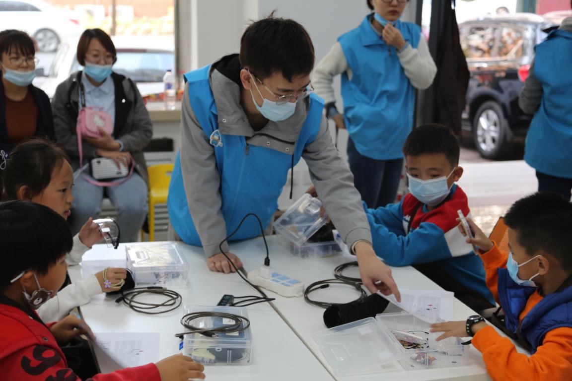 为激发青少年学习科学、探索科学的兴趣,启发青少年的创新思维,培养青少年的创新精神和实践能力,2020年10月8日上午9:00以及下午3:00,216+开放创新实验室联合一色 大学生科技创新协会(以下简称科协)于西朝阳路吉林省大学生创新实践示范基地举办了“创响中国”系列——玩转“电子积木”活动。本次活动的志愿者由2017级卓越工程师班的学生和科协成员组成。在小朋友们和志愿者们的共同努力下,活动圆满举行。 活动准备前期,志愿者们在实验室积极认真地准备活动材料,并对相关材料进行检查,确保活动正常进行。小朋友们签到并入座完毕后,活动正式开始。首先,由志愿者张逸群同学为小朋友们介绍活动内容和活动的注意事项,将安全工作落实到位。随后,每个小朋友在志愿者的陪同下亲自动手制作“电子积木”。活动过程中,现场气氛和谐融洽,志愿者们全神贯注地进行教学,小朋友们认真专注地投入其中,最终小朋友们都通过使用NE555等元器件组建电路,成功地让LED达到了自动闪烁的效果。在制作结束后,志愿者们为小朋友们颁发了结业证书并与小朋友们合影留念,活动在欢声笑语中圆满结束。 此次“创响中国”系列——玩转“电子积木”活动,不仅丰富了小朋友们的课余生活,帮助他们拓展了兴趣爱好并锻炼了他们的动手实践的能力,也让志愿者们也体会到了服务社会、回馈社会的乐趣,收获了丰富的实践经验和理论知识,彰显了“吉大精神”,传递了社会正能量。