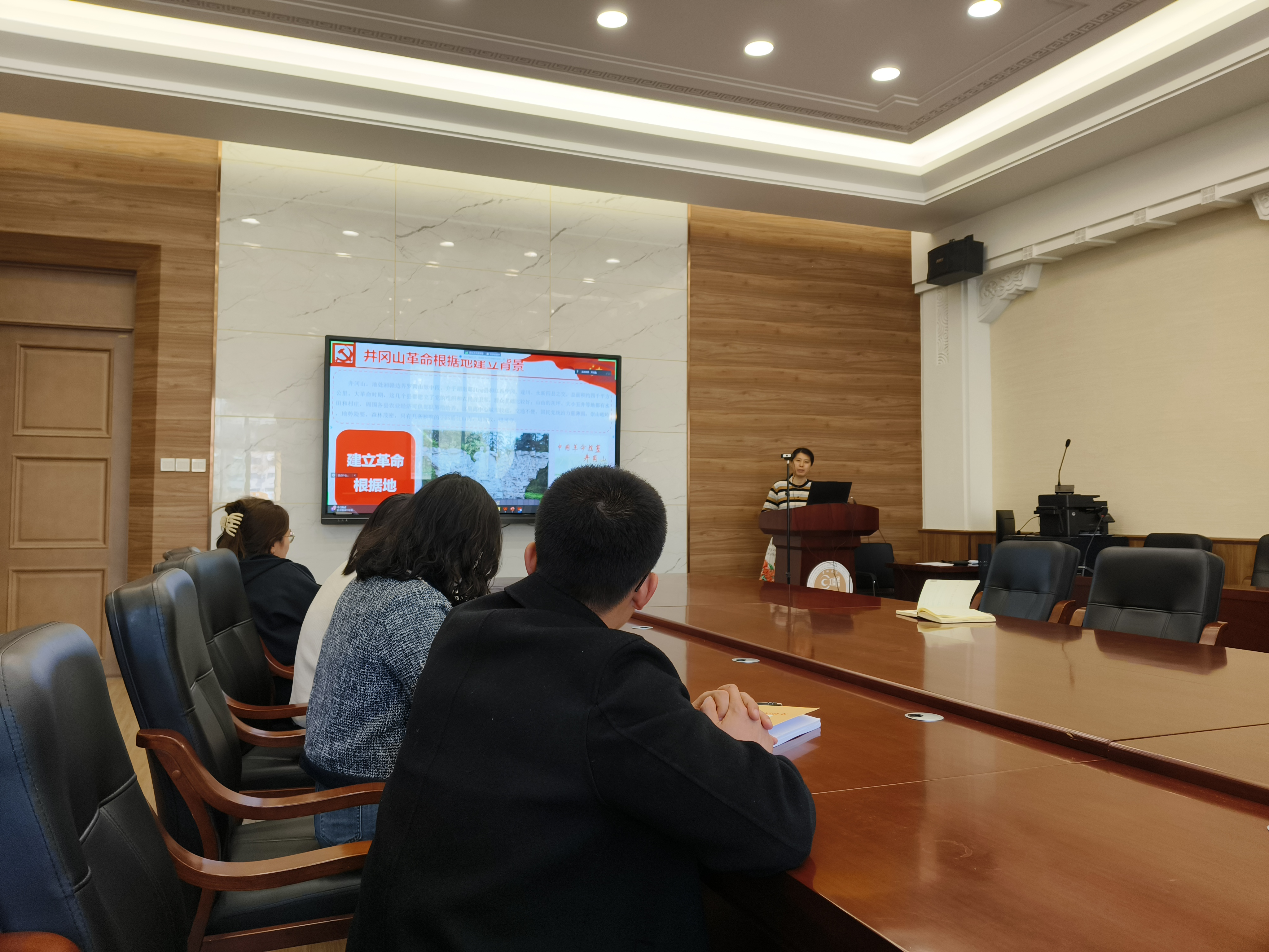 万云霞同志从井冈山革命根据地建立背景、井冈山革命斗争在中国革命中的地位和作用、井冈山革命斗争中的人和事、汲取前行的动力(思考)等四个方面为同志们分享了在培训中的所学、所感、所悟。