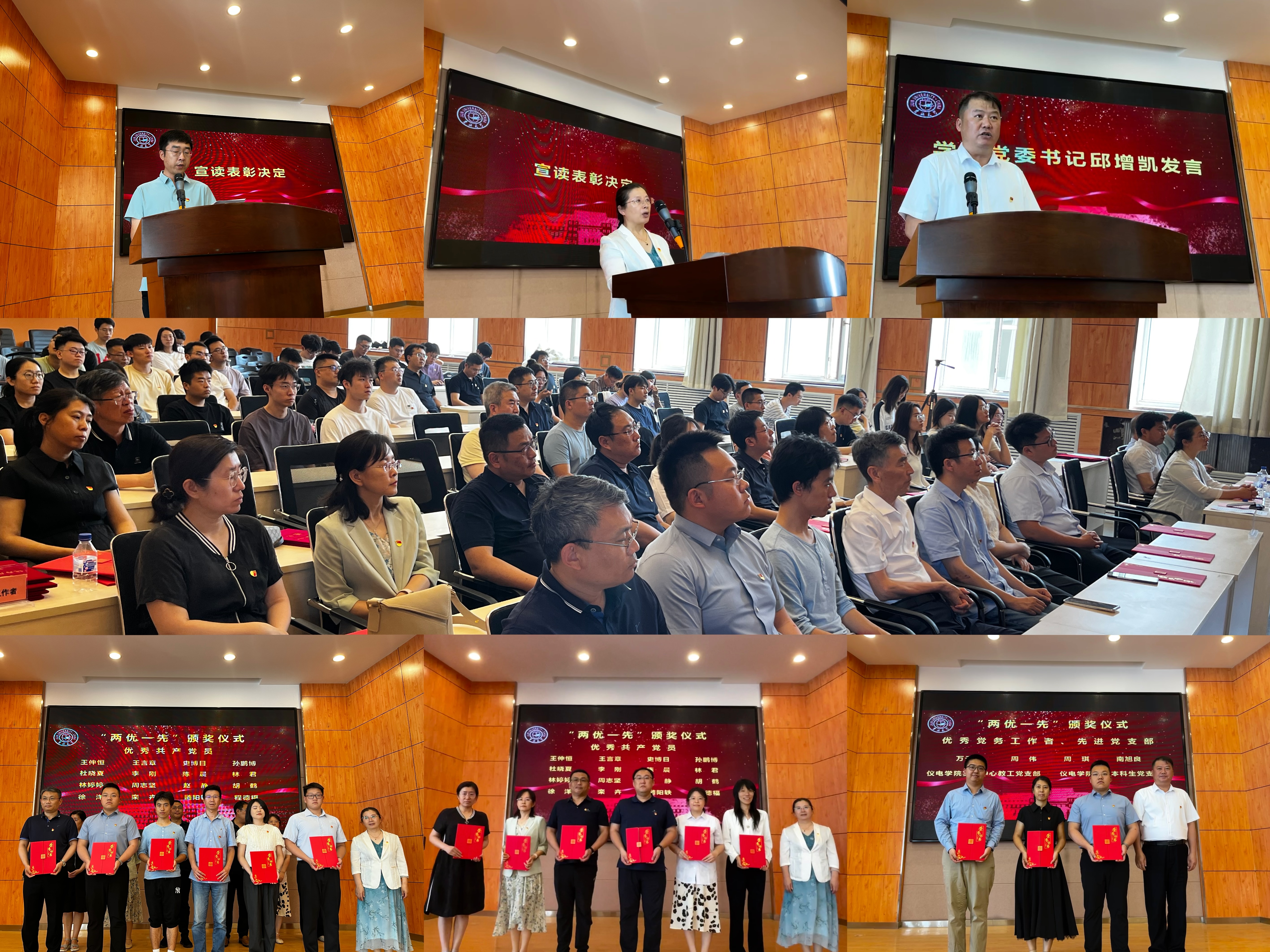 委员会关于表彰优秀共产党员、优秀党务工作者和先进党支部的决定》,表达了对受表彰者在各自岗位上卓越表现的肯定。随后,嵇艳鞠院长、邱增凯书记为受表彰的党员同志代表颁奖。