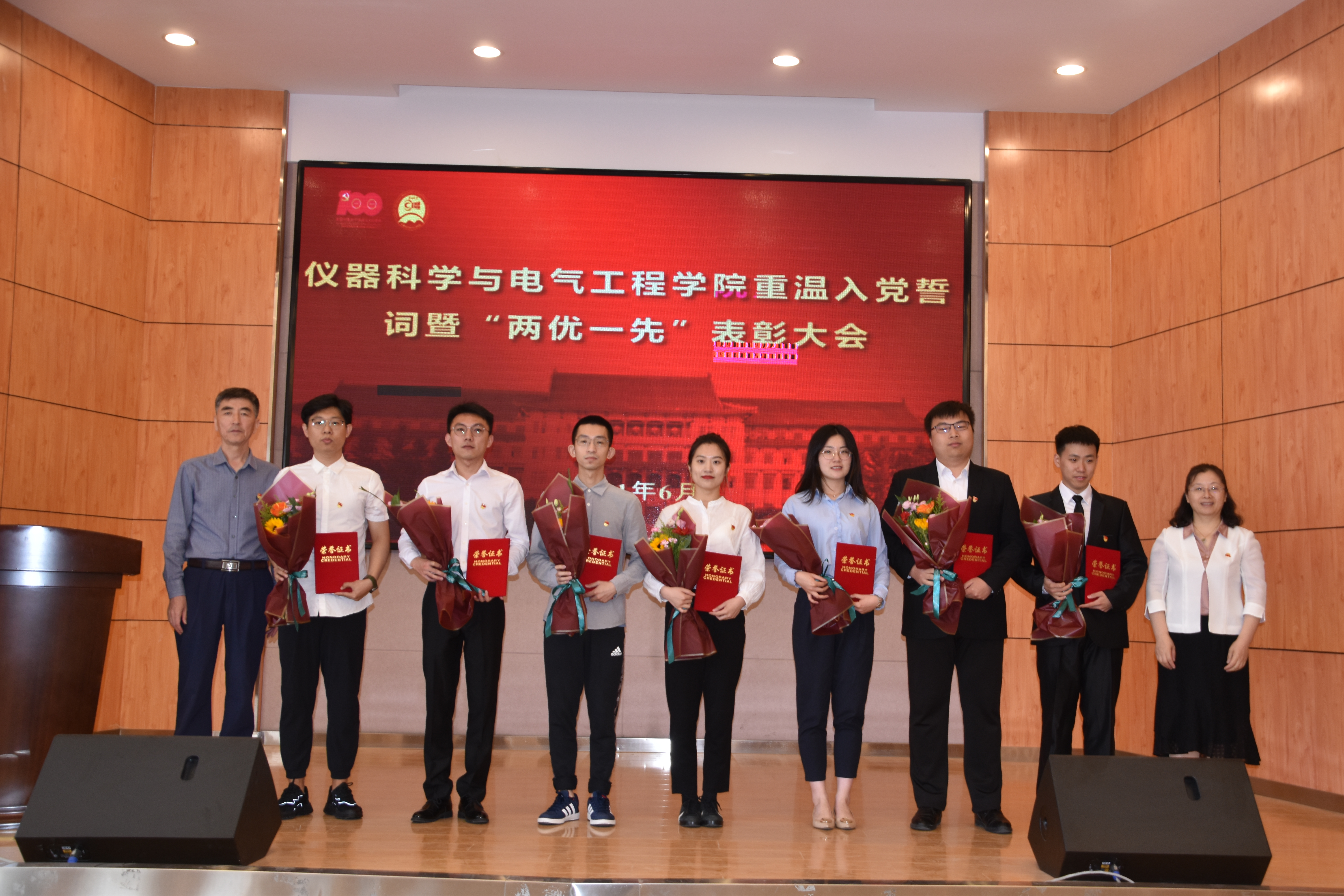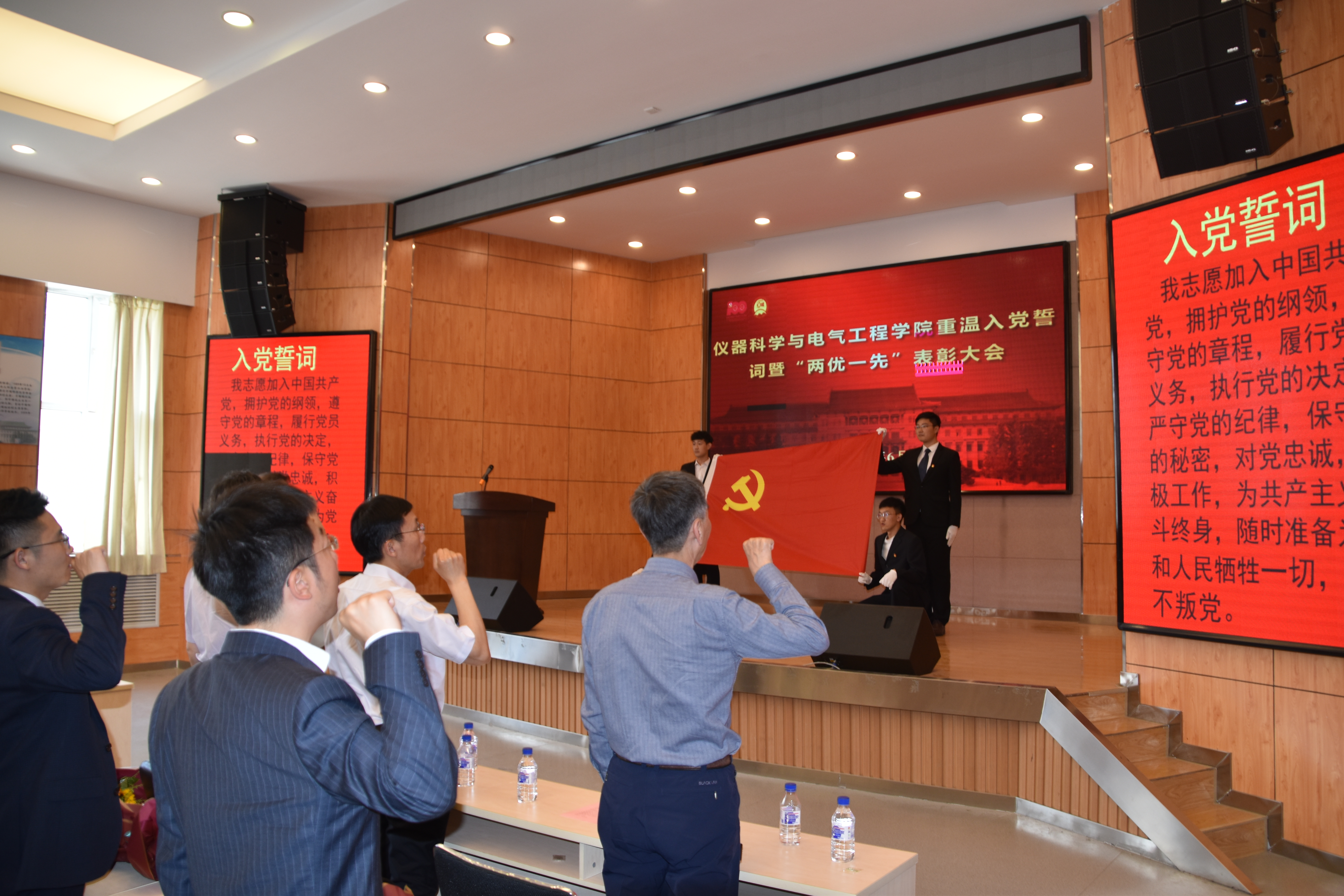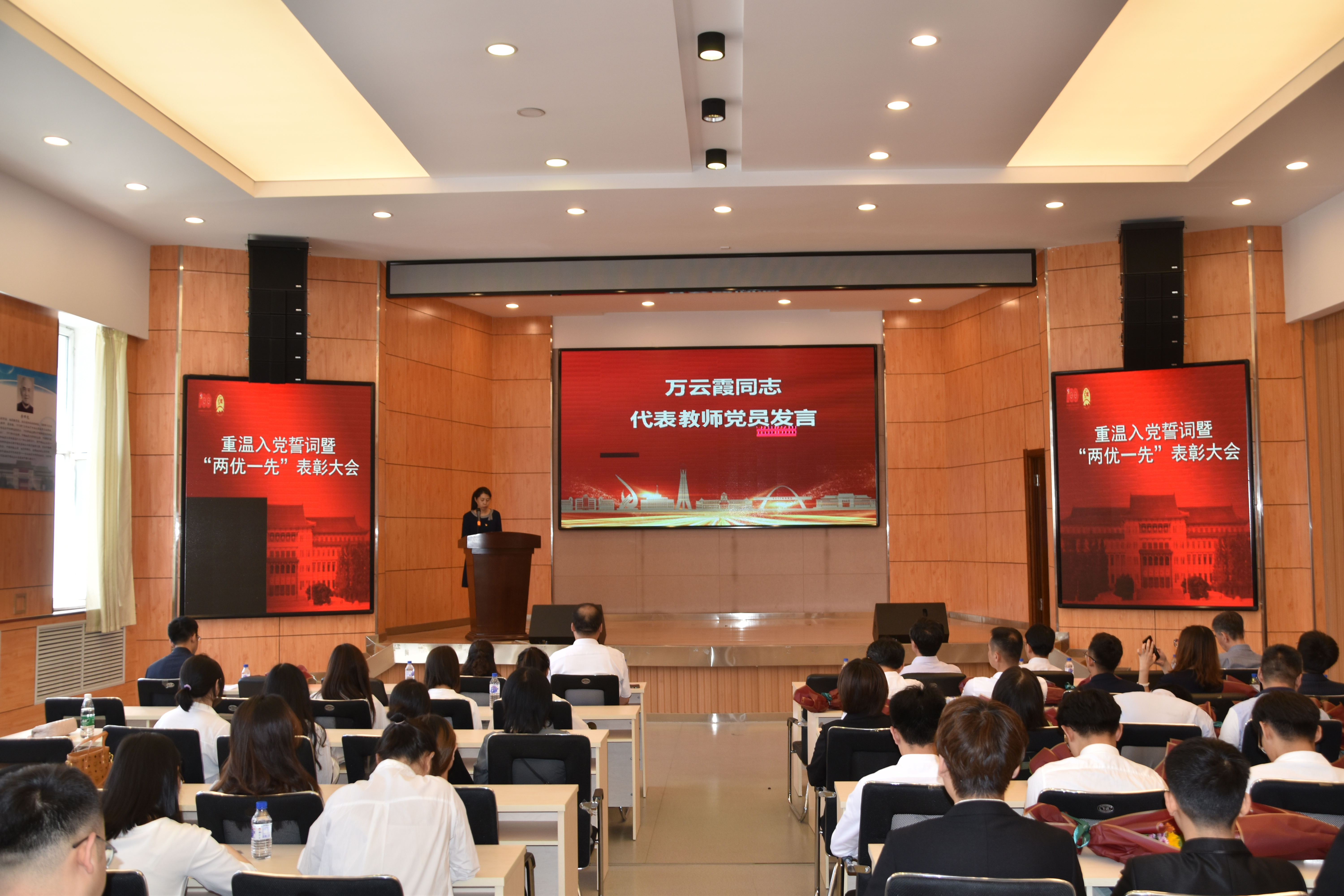 党委于2021年6月22日在朝阳校区图书馆报告厅举行重温入党誓词暨2021年“两优一先”表彰大会,学院全体党员参加大会,会议由一色
