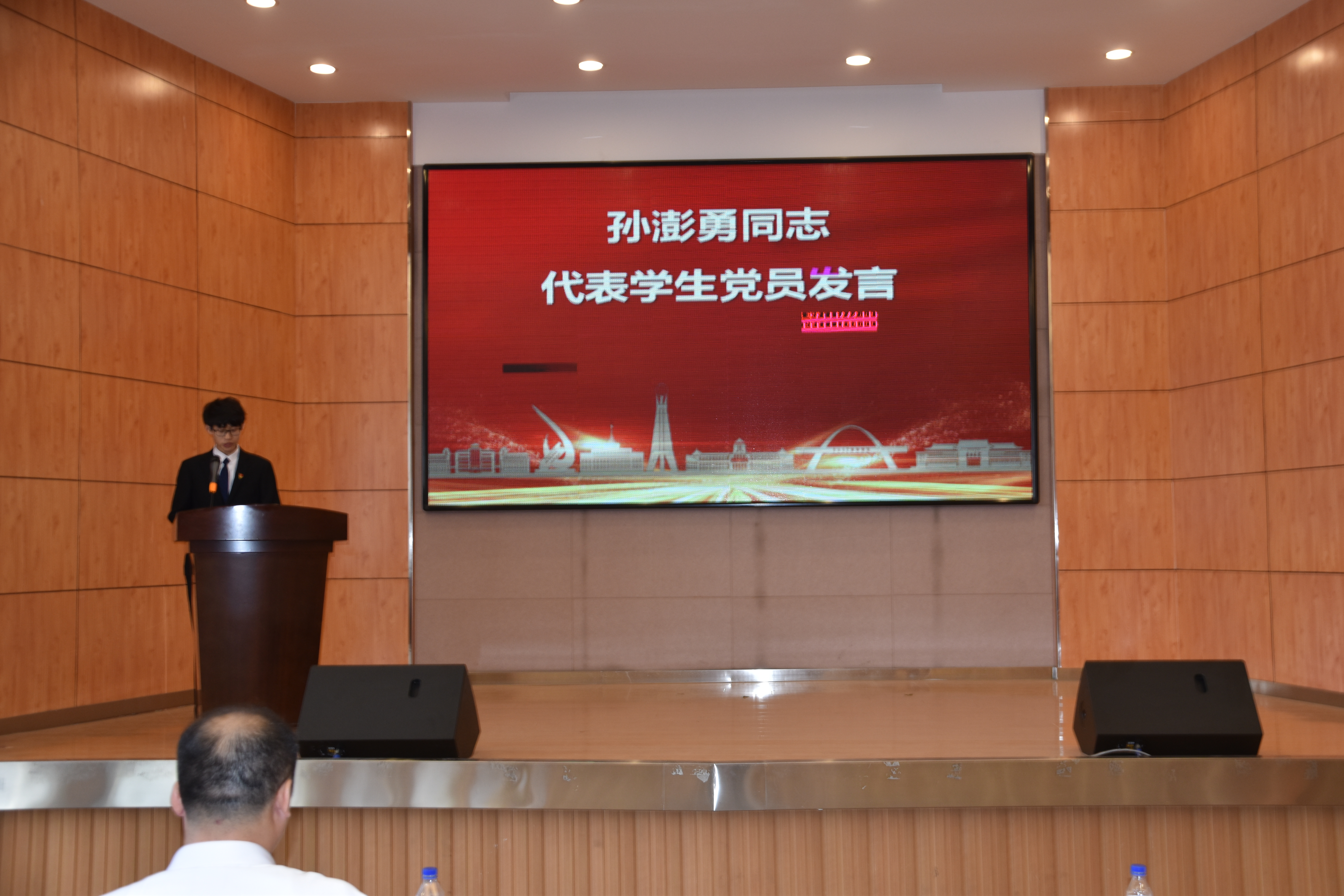 硕士研究生第一党支部书记孙澎勇同志围绕学党史、立伟大信念;做实事,当先锋模范;重专业,为又红又专做了发言。一色